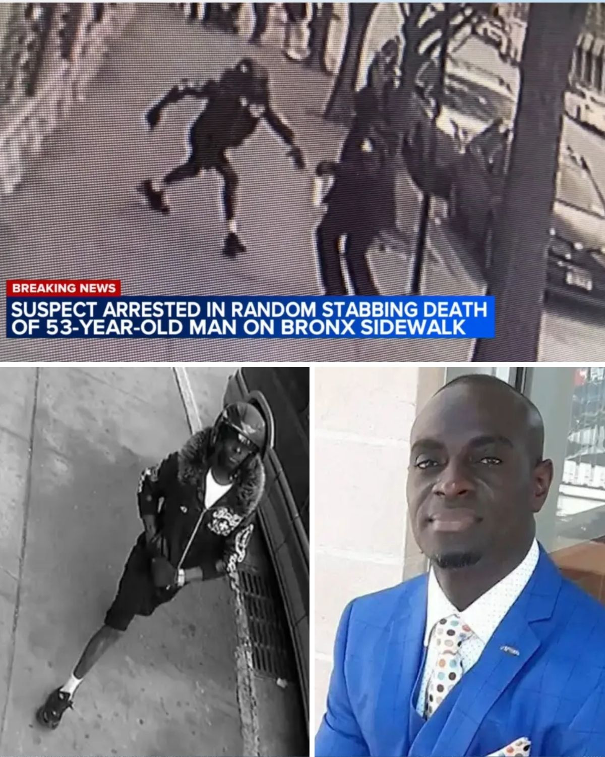 Security footage showing the suspect in the random stabbing death of a 53-year-old man on a Bronx sidewalk.3
